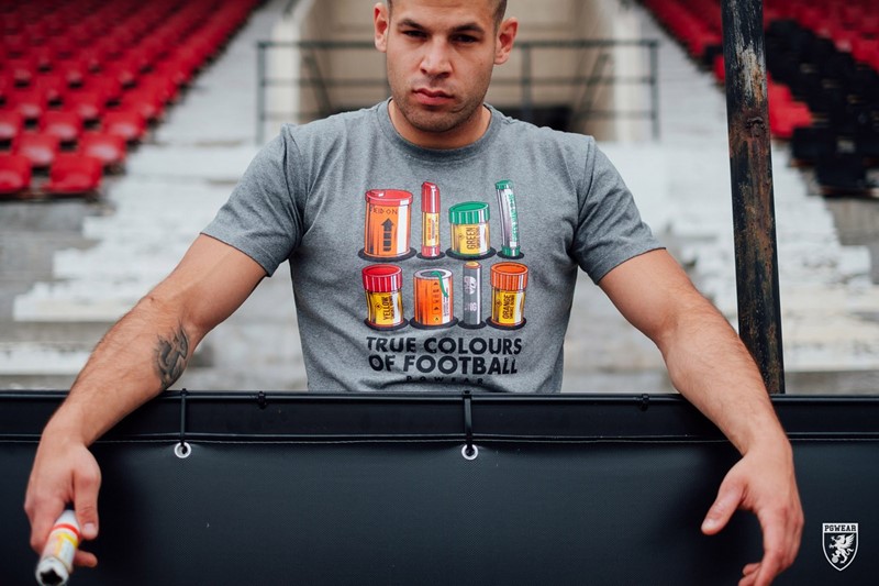 Tričko PGwear s potiskem z kolekce podzim / zima 2018 vyrobené z vysoce kvalitní bavlny. Muž na fotografii měří 183 cm a má na sobě velikost L. Materiál: 100% Bavlna, Gramáž: 210 g/m2.